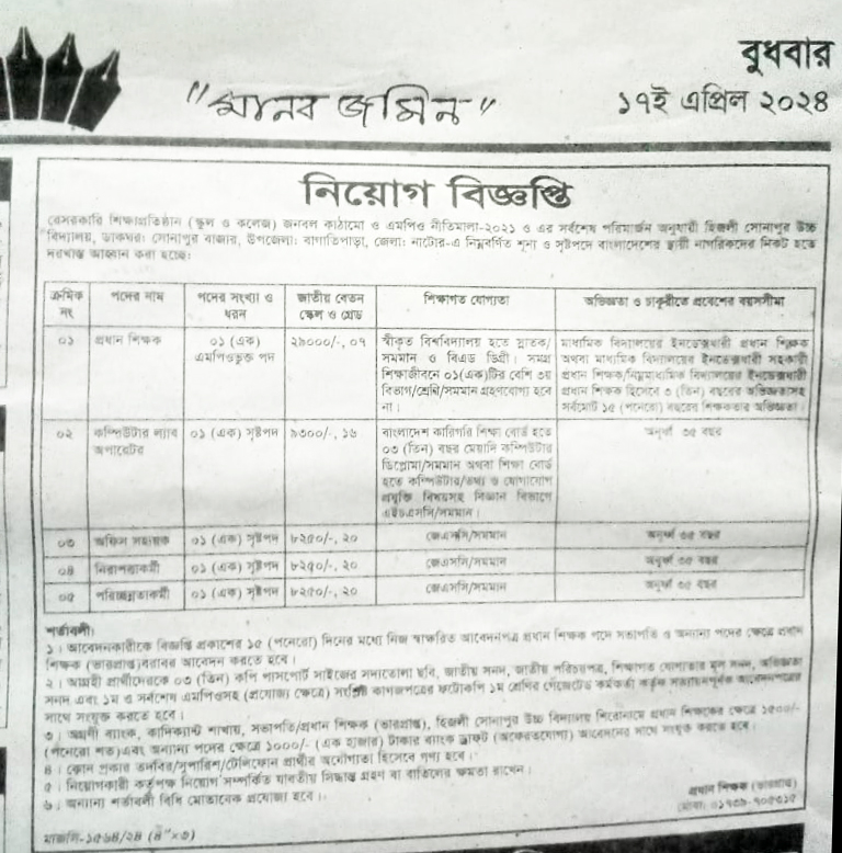 নিয়োগ বিজ্ঞপ্তি